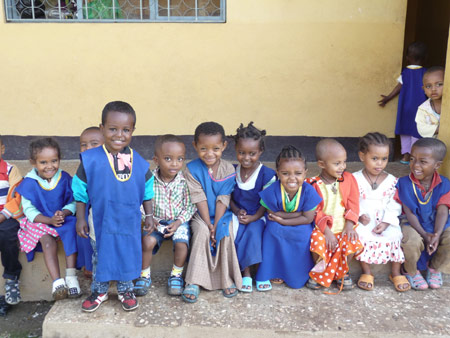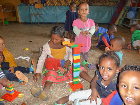 June 2018 Day Care The Day Care Centre has over 200 children attending 5 days a week. Ethiopiahope is sponsoring 32 of these children. For £75.00 per year a child receives education and a lunchtime meal with tea and biscuits morning and afternoon. We also supply medical support and clothing if required. Monday mornings it is apparent that some of the children have had very little to eat over the weekend as they waft down their tea and biscuits. The 8 teachers give the children great care and attention; the atmosphere is always bright and full of fun. We purchased some new toys this year, building blocks and balls. Added to this we took out some new teddies.